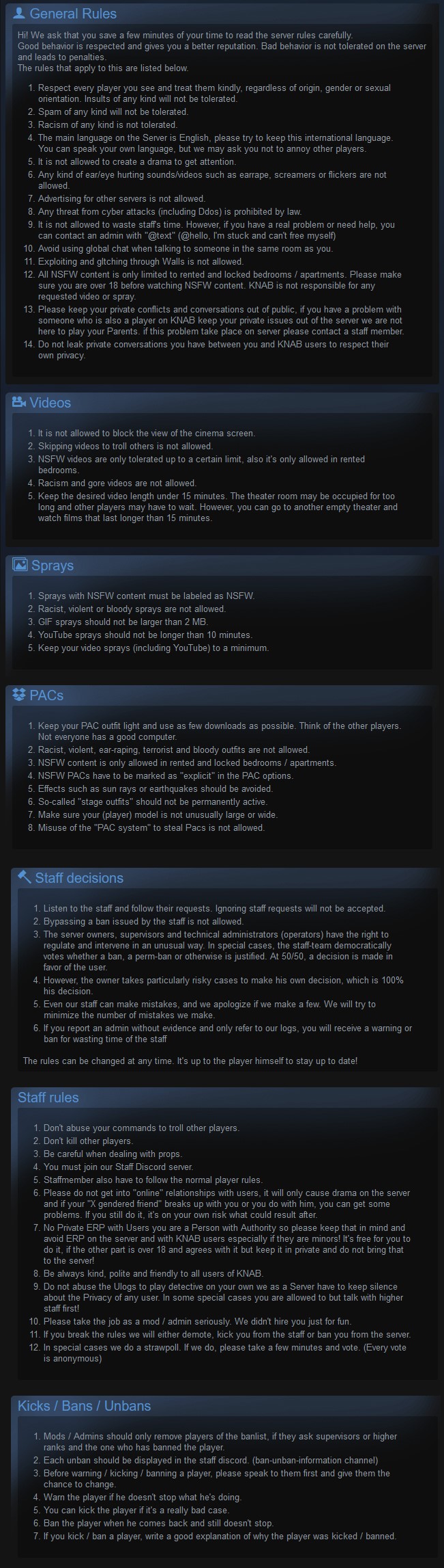 Pay attention to our rules Racist, violent, ear-raping, terrorist, bloody, heavy shaking, heavy lights are not allowed.