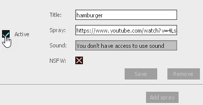 • Mark the spray as active