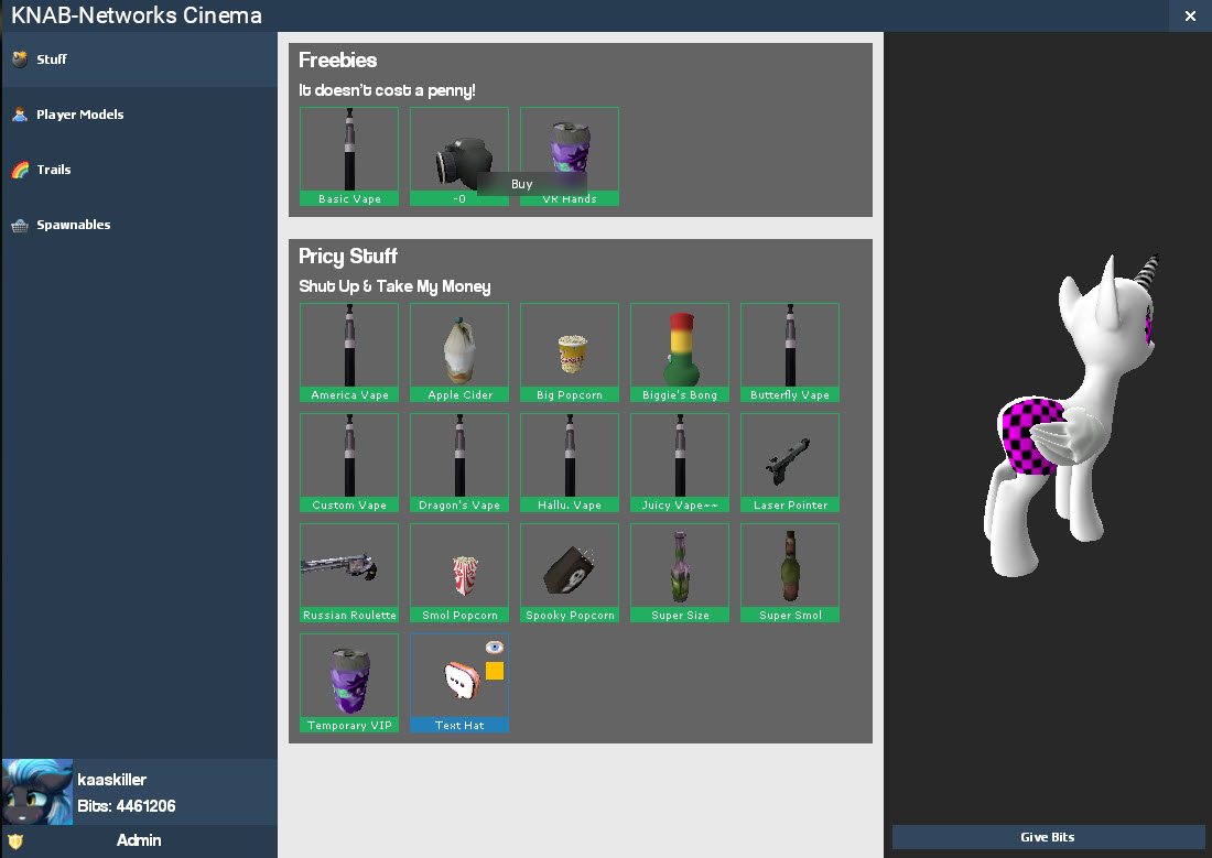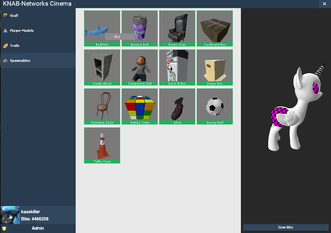 • You can also buy props at the spawnables. Buy, spawn and play! :3 but but they will be gone once you leave.